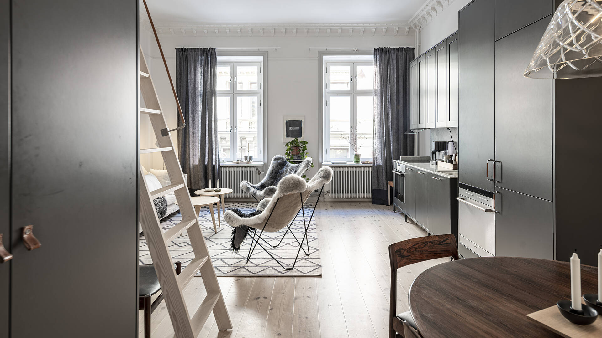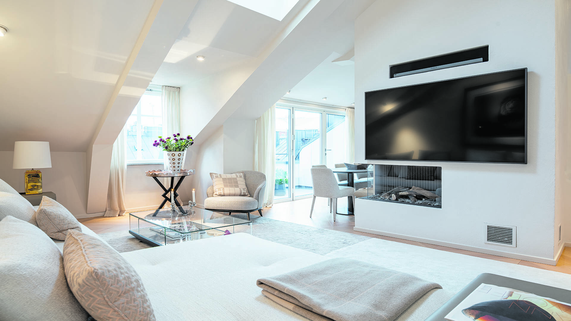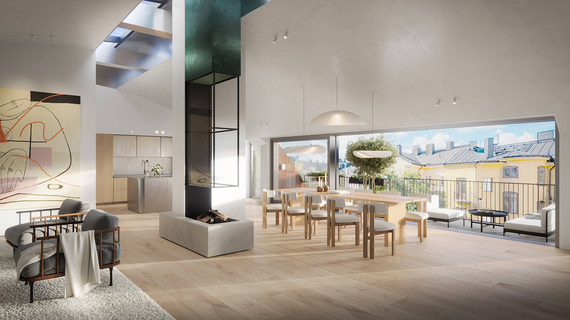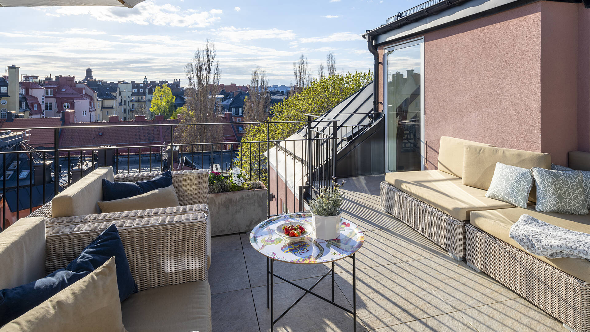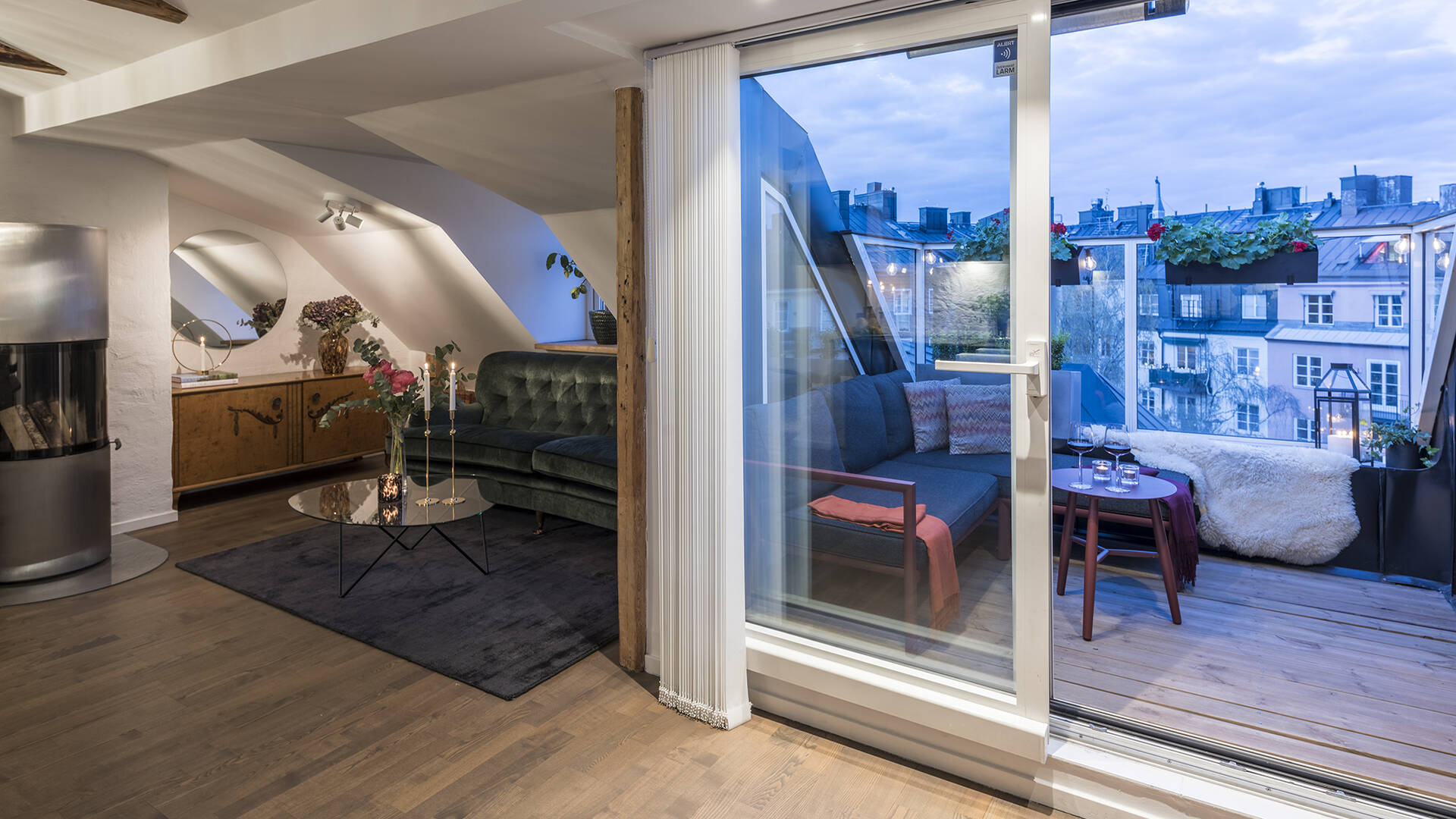 östermalm - spektakulär och påkostad vindsvåning om 93 m² med eldstad, altan och hiss in i våningen