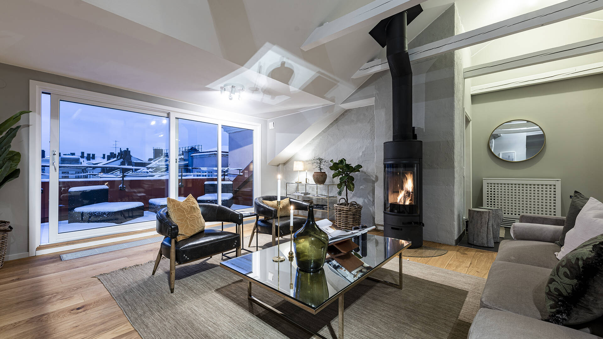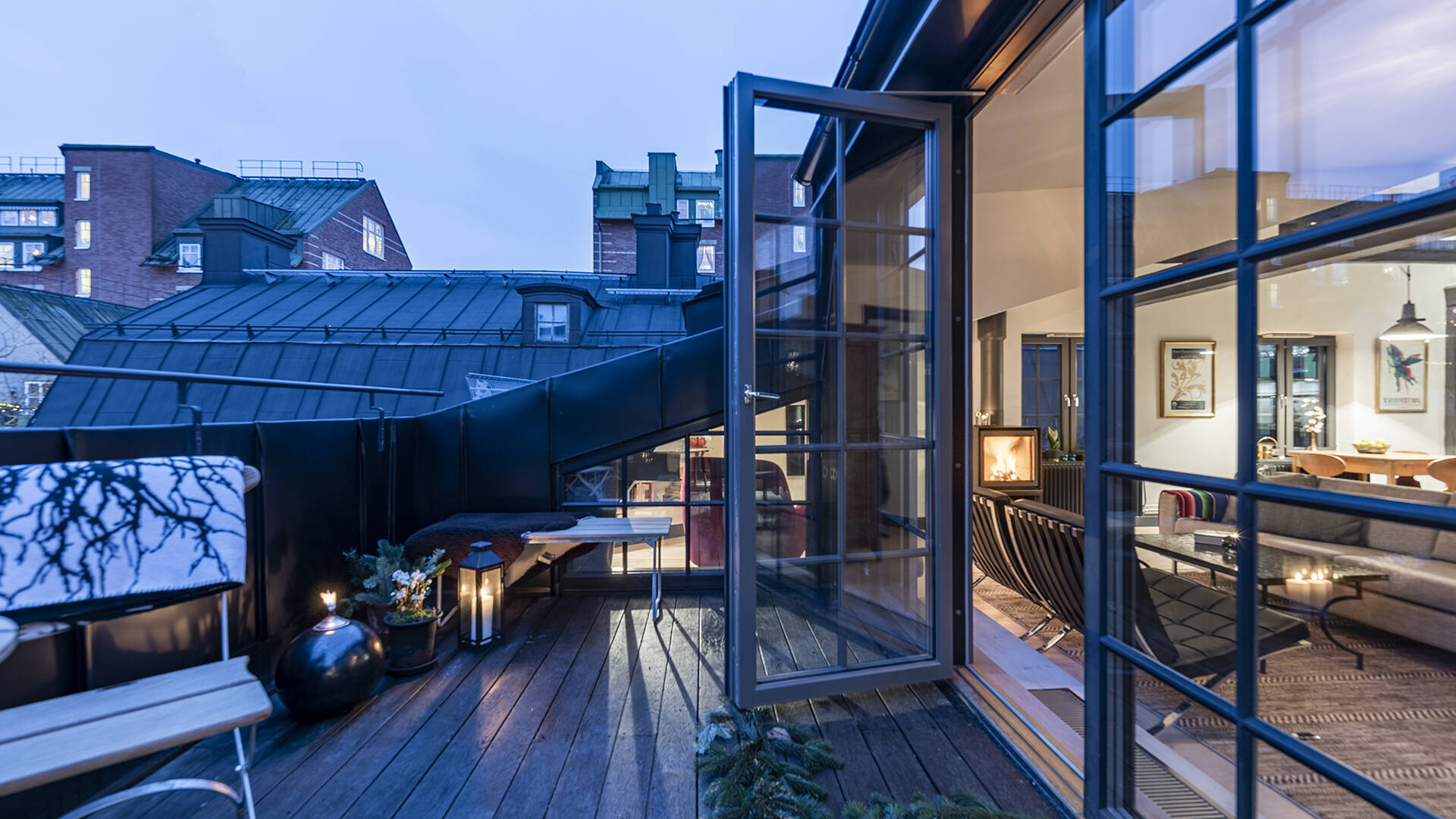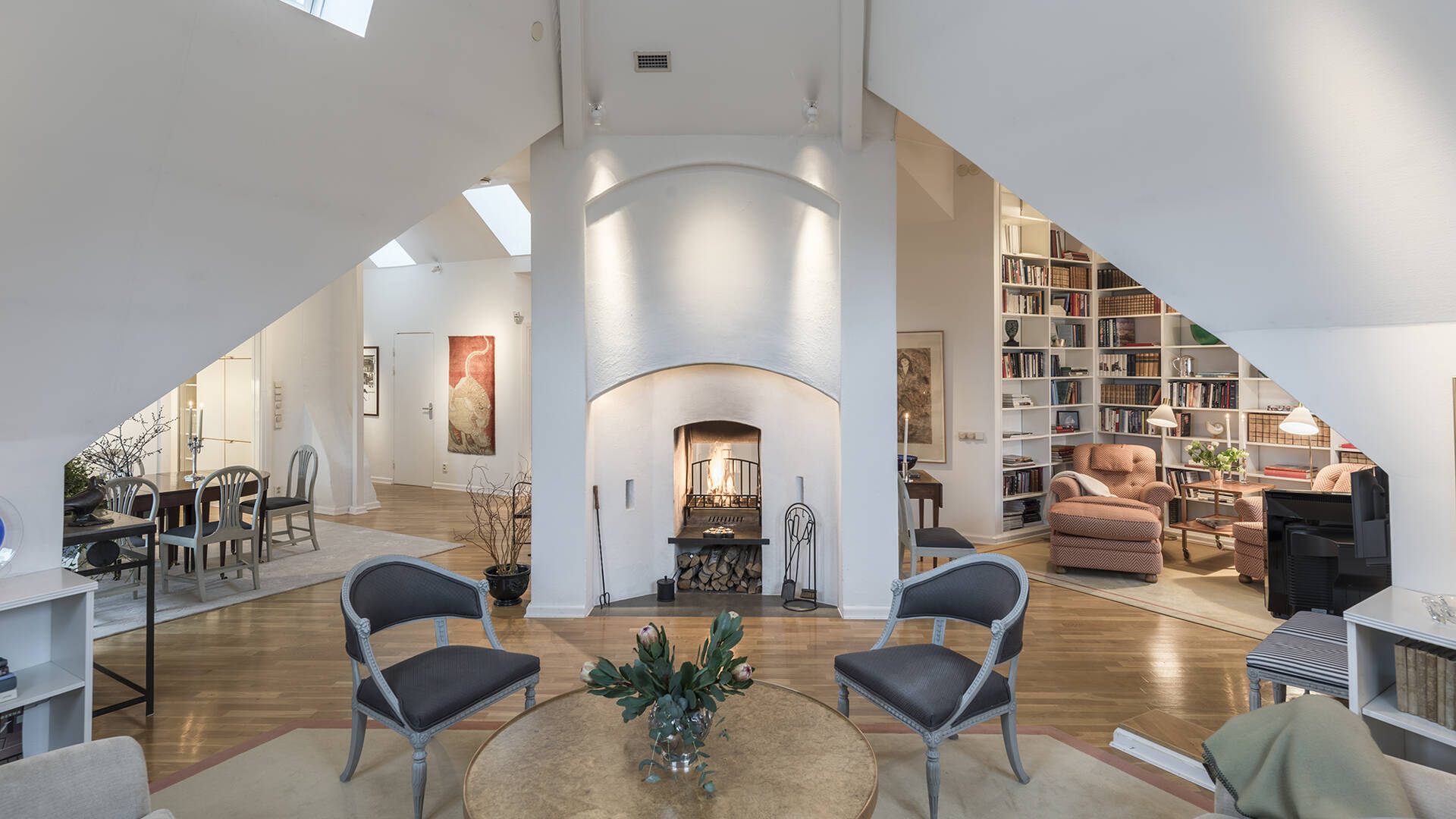 östermalm - spektakulär och påkostad vindsvåning om 93 m² med eldstad, altan och hiss in i våningen